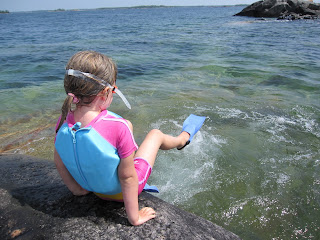 We pulled Oona on a surf board. She held on, stood up, balanced, and never fell off once. Waterskiis next year.
